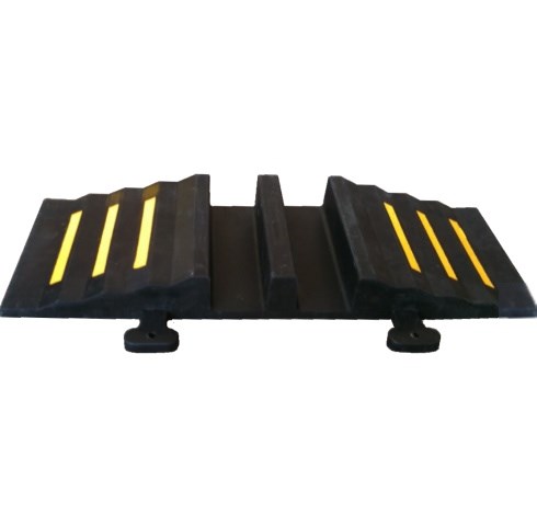 Slangbrygga utan lock för skydd av slangar, kablar och rör. Skyddet är tillverkat i gummi med reflekterande stripes för ökad synbarheten. Skyddet läggs direkt på asfalten och ska normalt inte fästas i marken. För montage i sidled kopplas varje enhet ihop med två utfällbara "hundben".