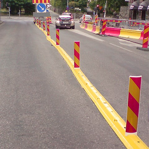 Stadig trafikledningslist tillverkad i gummi. Bitarna kopplas i varandra som pusselbitar och kan förankras i marken med asfaltsbult.
