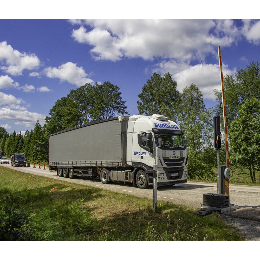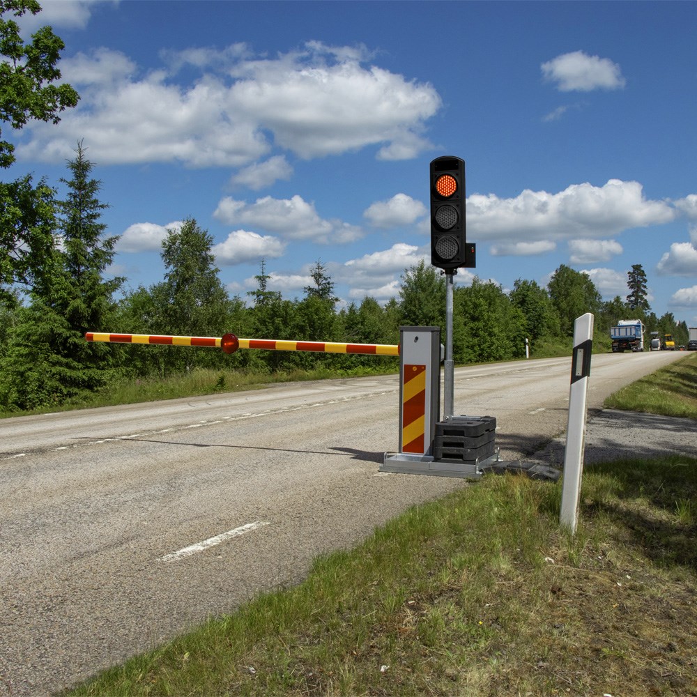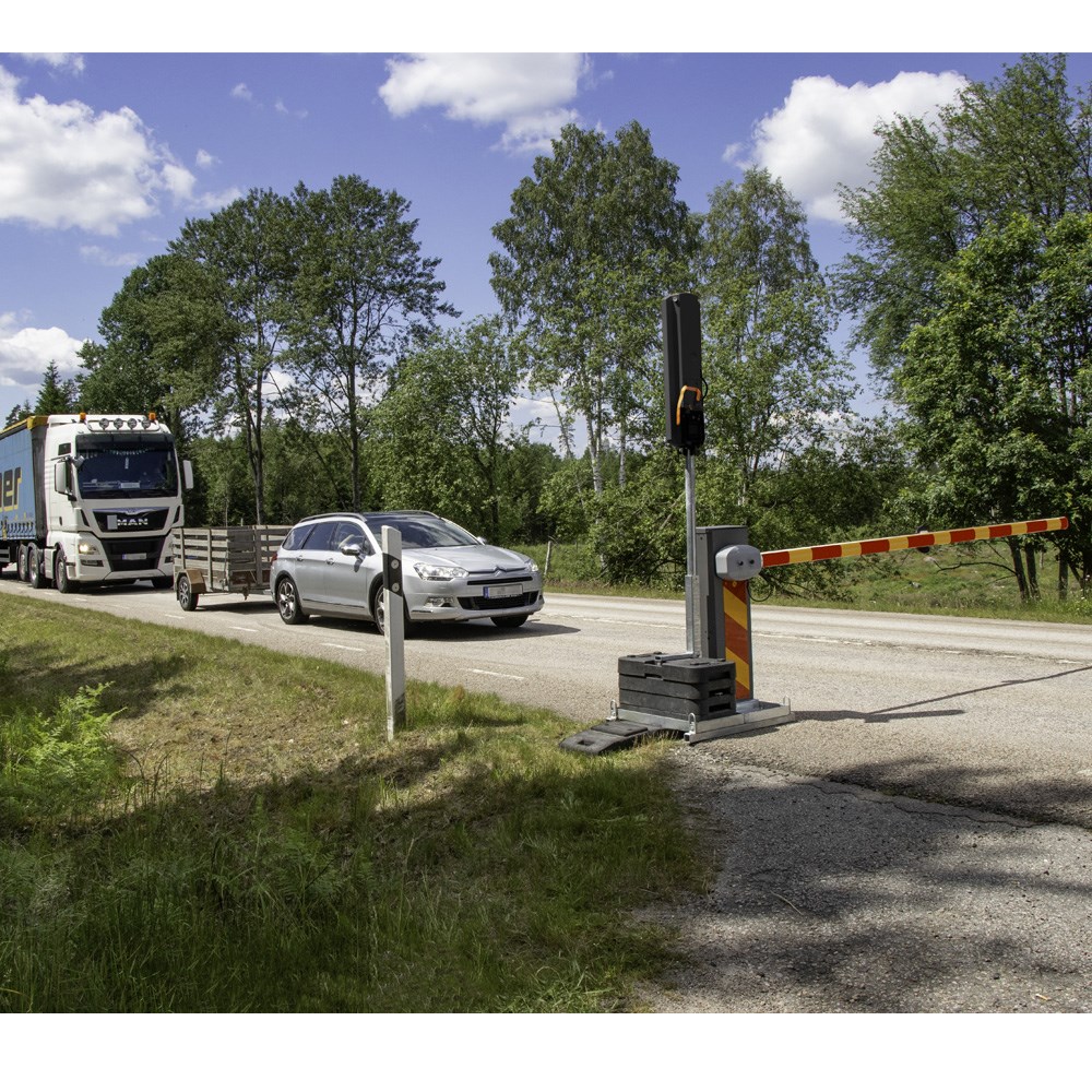Lotssignal med 4 m snabbfällande bom. Den fjärrstyrda lotssignalen erbjuder justerbara tider eller manuell styrning, vilket gör den idealisk för att hindra fordonstrafik från att passera in i ett arbetsområde. Det minskar behovet av personal på plats och ökar säkerheten. Bomfällningen sker automatiskt vid rött ljus på lotssignalen.