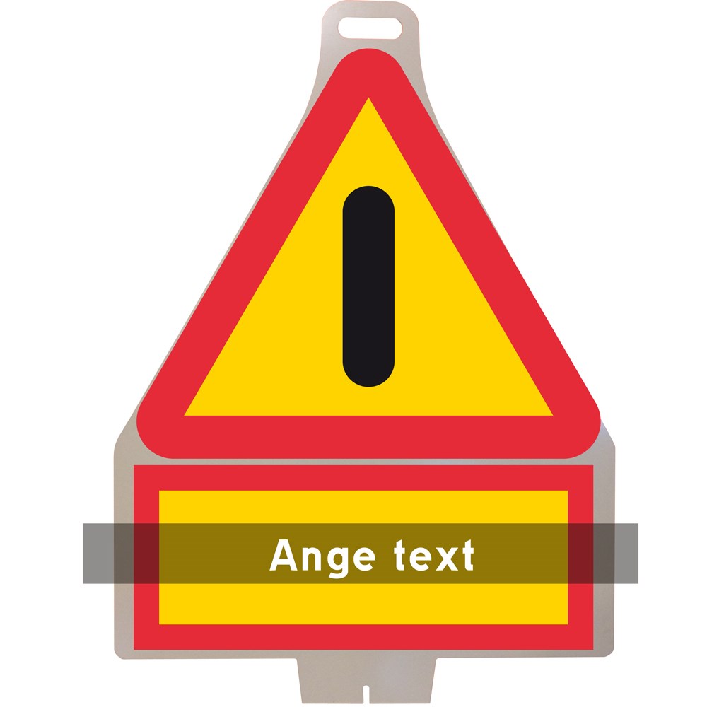 Plastskylt med vägmärke A40 - Varning för annan fara. Märket anger en annan fara än sådan som kan anges med något annat varningsmärke. Valfri text på tilläggstavlan om farans art.