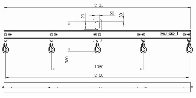 Lyftok till trafikbuffertar, galvad, 5 krokar, 1100kg, CE-märkt