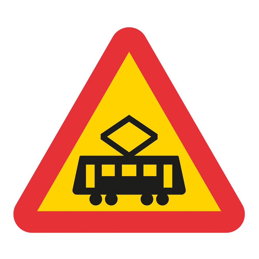 A37 Varning för korsning med spårväg utan bommar, plastskylt.