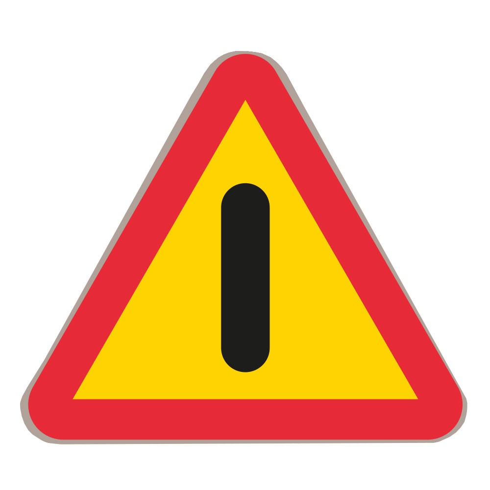 A40 Varning för annan fara, stor plastskylt. Märket anger en annan fara än sådan som kan anges med något annat varningsmärke. Farans art anges på en tilläggstavla.