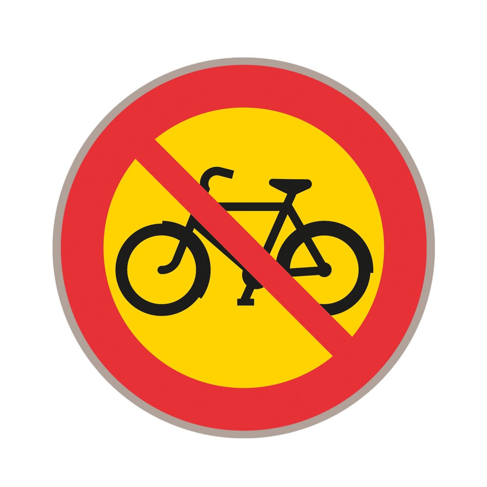 C10. Förbud mot trafik med cykel och moped klass II, plastskylt. Avser förbudet även trafik med moped klass I anges det på en tilläggstavla.