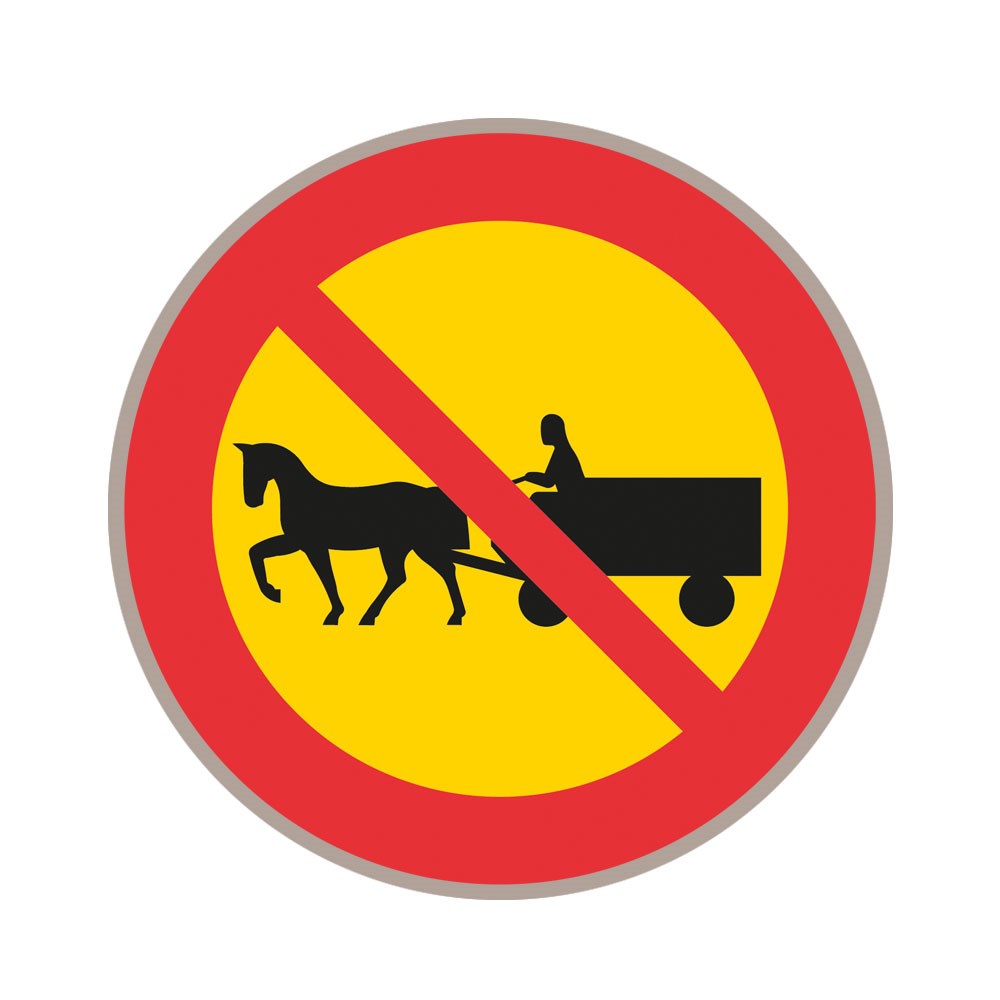 C12 Förbud mot trafik med fordon förspänt med dragdjur, plastskylt.