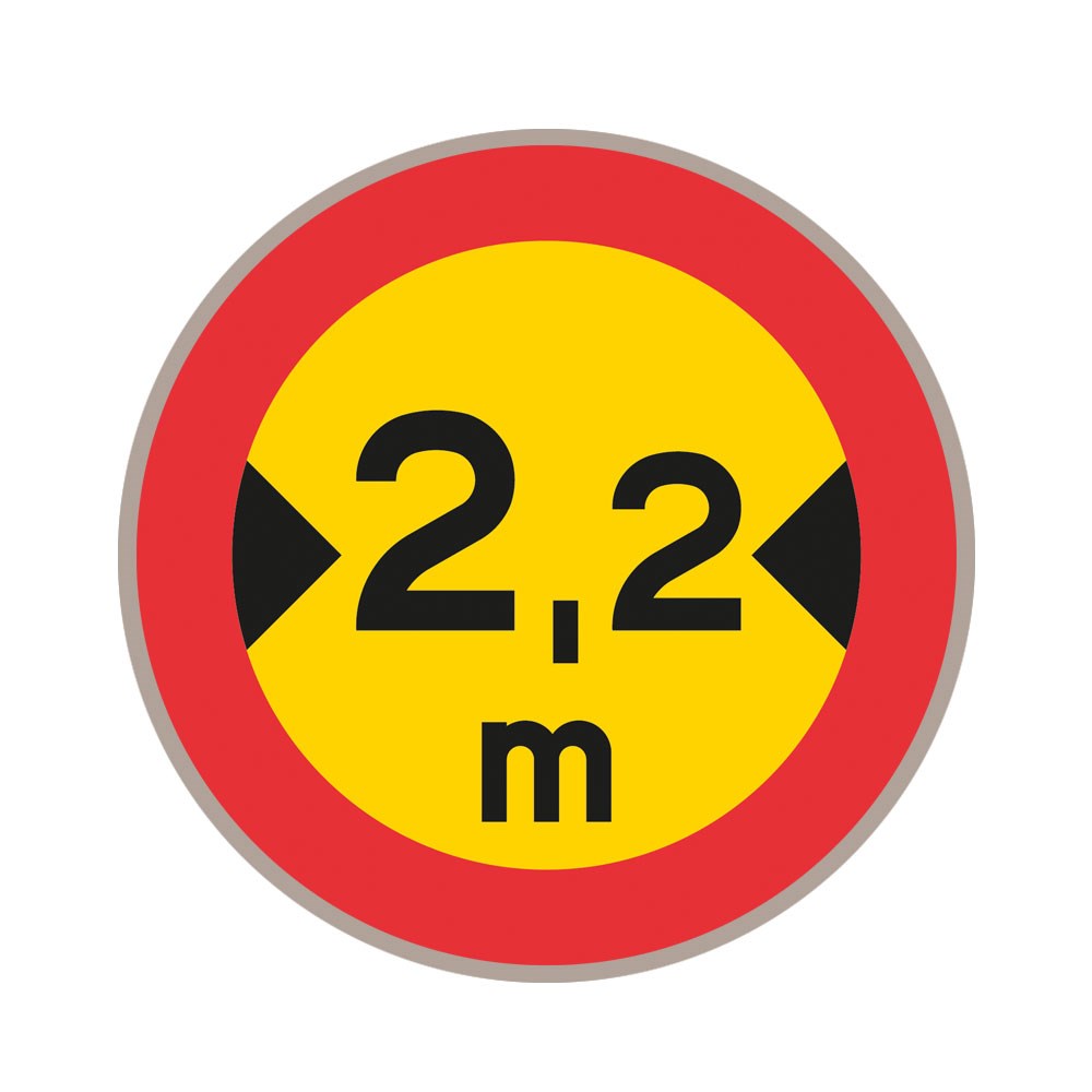 C16 Begränsad fordonsbredd, plastskylt. Märket anger förbud mot trafik med fordon över en viss bredd. Största tillåtna bredd anges på märket.