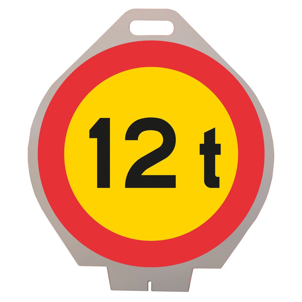 C20 Begränsad bruttovikt på fordon, plastskylt med handtag. Högsta tillåtna bruttovikt anges på märket.