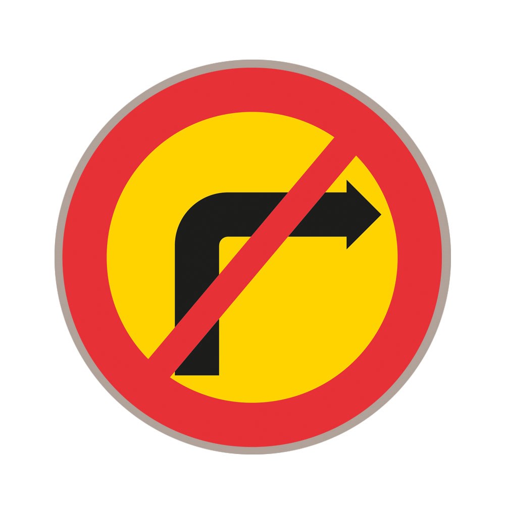 C25-2 Förbud mot sväng i korsning. Förbudet gäller den korsning eller motsvarande som märket är placerat i eller före. Märket kan avse flera korsningar. Sträckans längd anges då på en tilläggstavla. Symbolen är anpassad efter förhållandena på platsen.