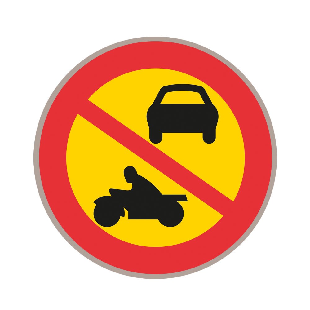 C3 Förbud mot trafik med annat motordrivet fordon än moped klass II, plastskylt. Avser förbudet även moped klass II anges detta på en tilläggstavla.