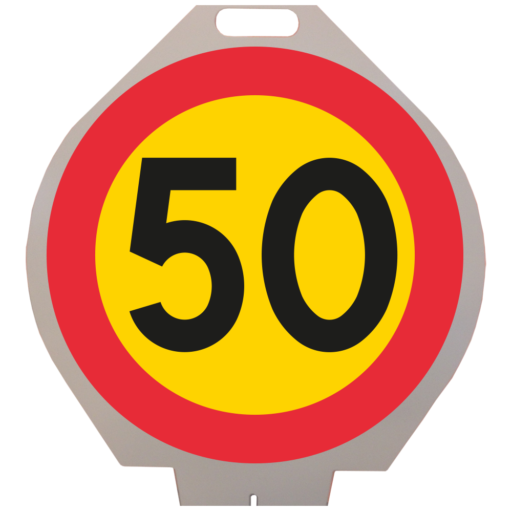 C31-5 N3 Plastskylt med handtag, Hastighetsbegränsning 50km
