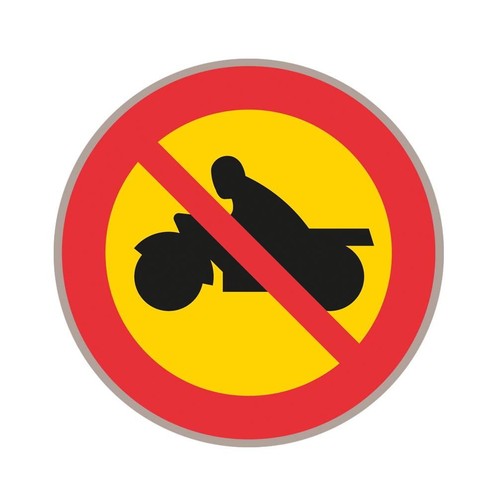 C5. Förbud mot trafik med motorcykel och moped klass I, plastskylt.