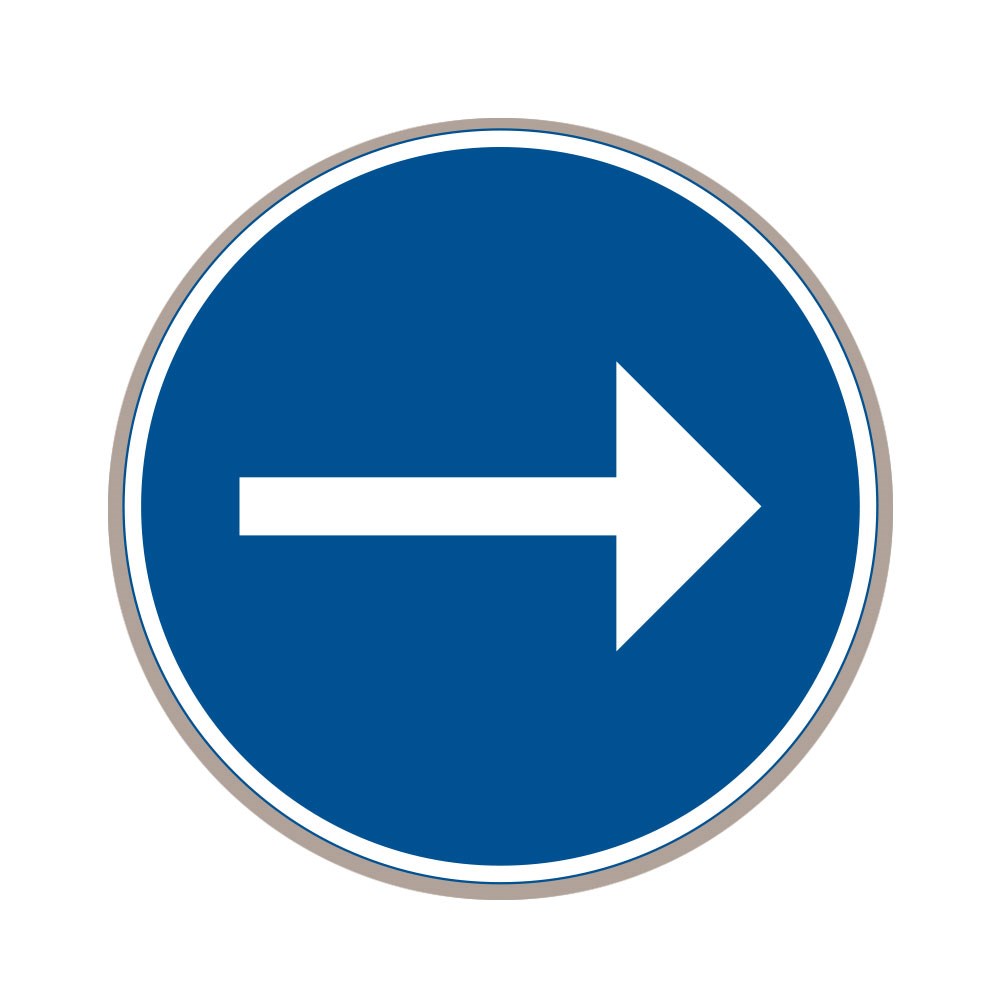D1-2. Märket anger att fordon endast får föras i pilens eller, där två pilar finns, i endera pilens riktning. Symbolen är anpassad efter förhållandena på platsen.