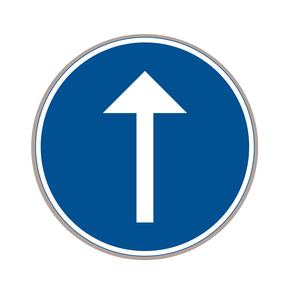 D1-3. Märket anger att fordon endast får föras i pilens eller, där två pilar finns, i endera pilens riktning. Symbolen är anpassad efter förhållandena på platsen.