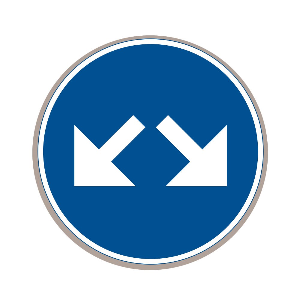 D2-3. Märket anger att fordon endast får föras i pilens eller, där två pilar finns, i endera pilens riktning. Symbolen är anpassad efter förhållandena på platsen.