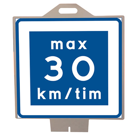 E11 N3 Plastskylt med handtag, 1-sid Rek lägre hastighet 30km