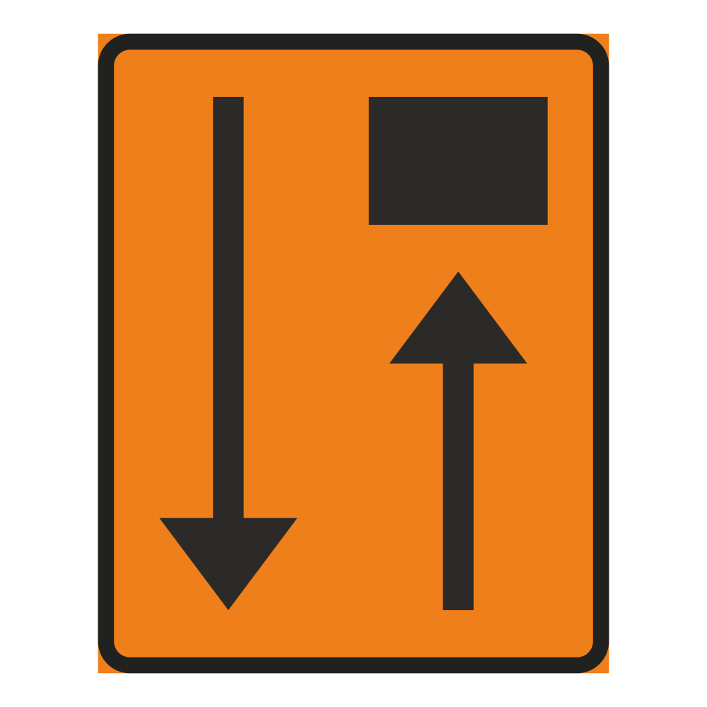 Vägmärke F26-1 "Körfält avstängt" i plast med fluorescerande reflex klass 3.