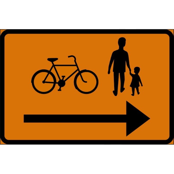 Vägmärke J2 orange 3F S8+S10 Högerpil 600x400mm plast