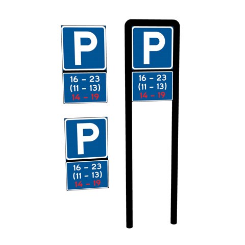 Skyltbåge pulverlackad i svart varmgalvaniserat stål inkl. 2-sidigt vägmärke och tilläggstavla. Skyltbågen monteras i betong eller stålfundament för 60 mm rör och fästs med M8 öglebult.
