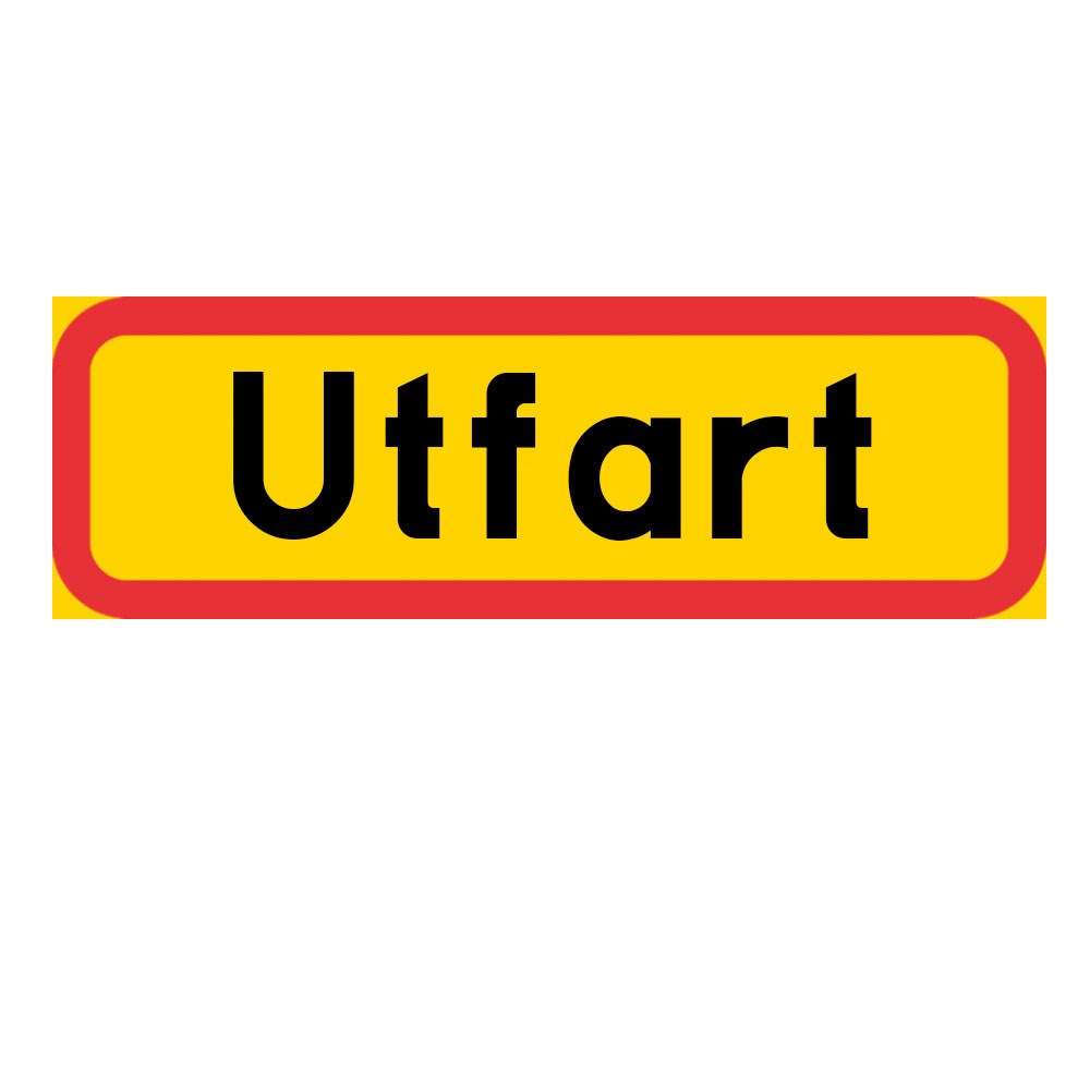 Tilläggstavla "Utfart", plastskylt 770x295 mm. Tilläggstavlor ger kompletterande anvisningar till vägmärken, till exempel ange ett avstånd, en vägsträckas längd eller en tidsangivelse.